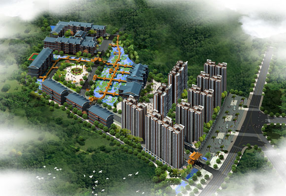 華龍村蓮湖花園商住樓·鳥瞰效果圖