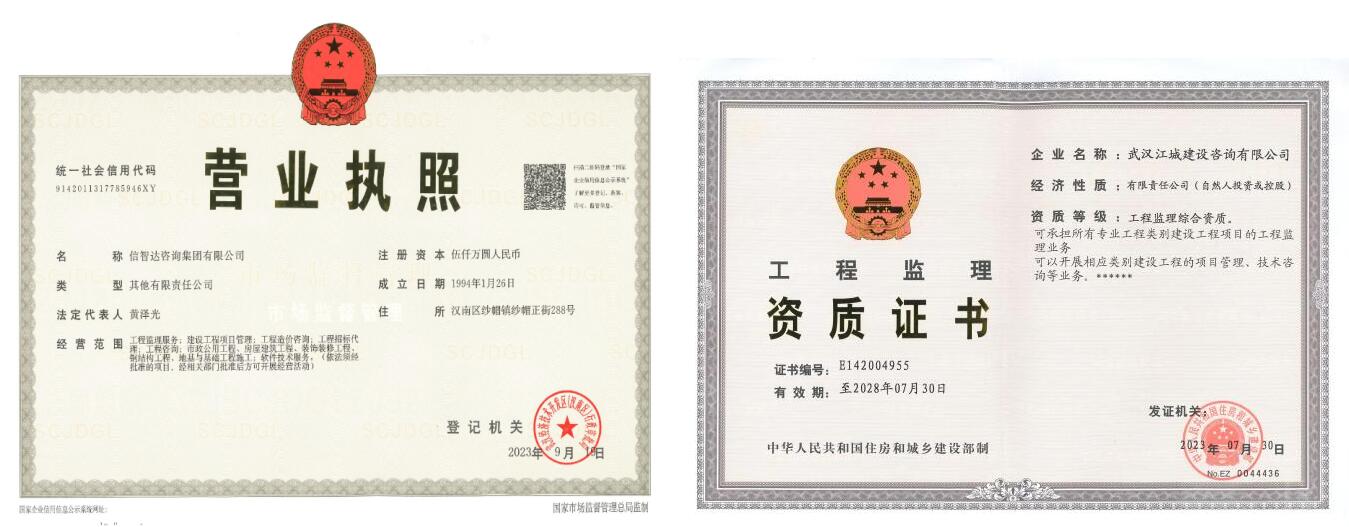 2023年7月, 武漢江城建設(shè)咨詢有限公司(以下簡(jiǎn)稱“武漢江城”)取得工程監(jiān)理綜合級(jí)資質(zhì)。