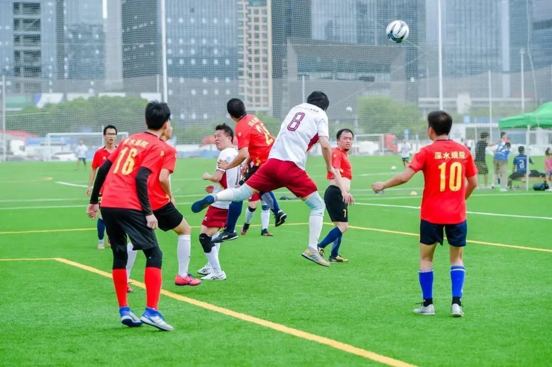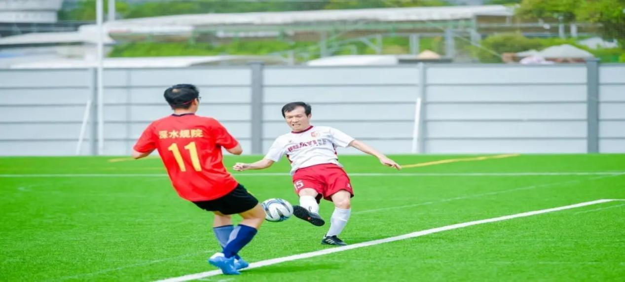 季軍爭奪戰(zhàn)在深水規(guī)院隊(紅色球衣)和華藝設計隊(白色球衣)之間展開。